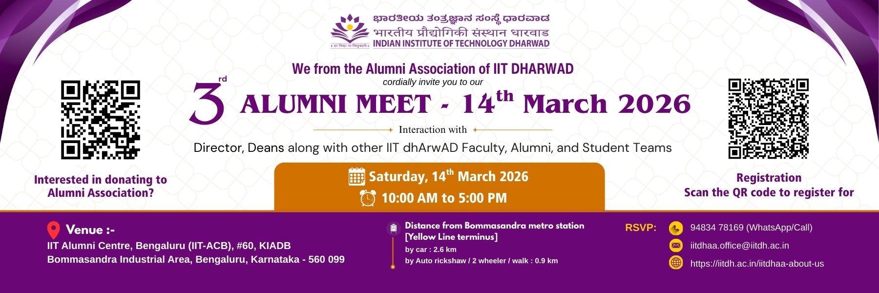 Indian Institute of Technology DHARWAD(IITDH) is one of the third Generation (3-G) IITs, which were established by the Ministry of Education (MoE), Government of India (GoI)....