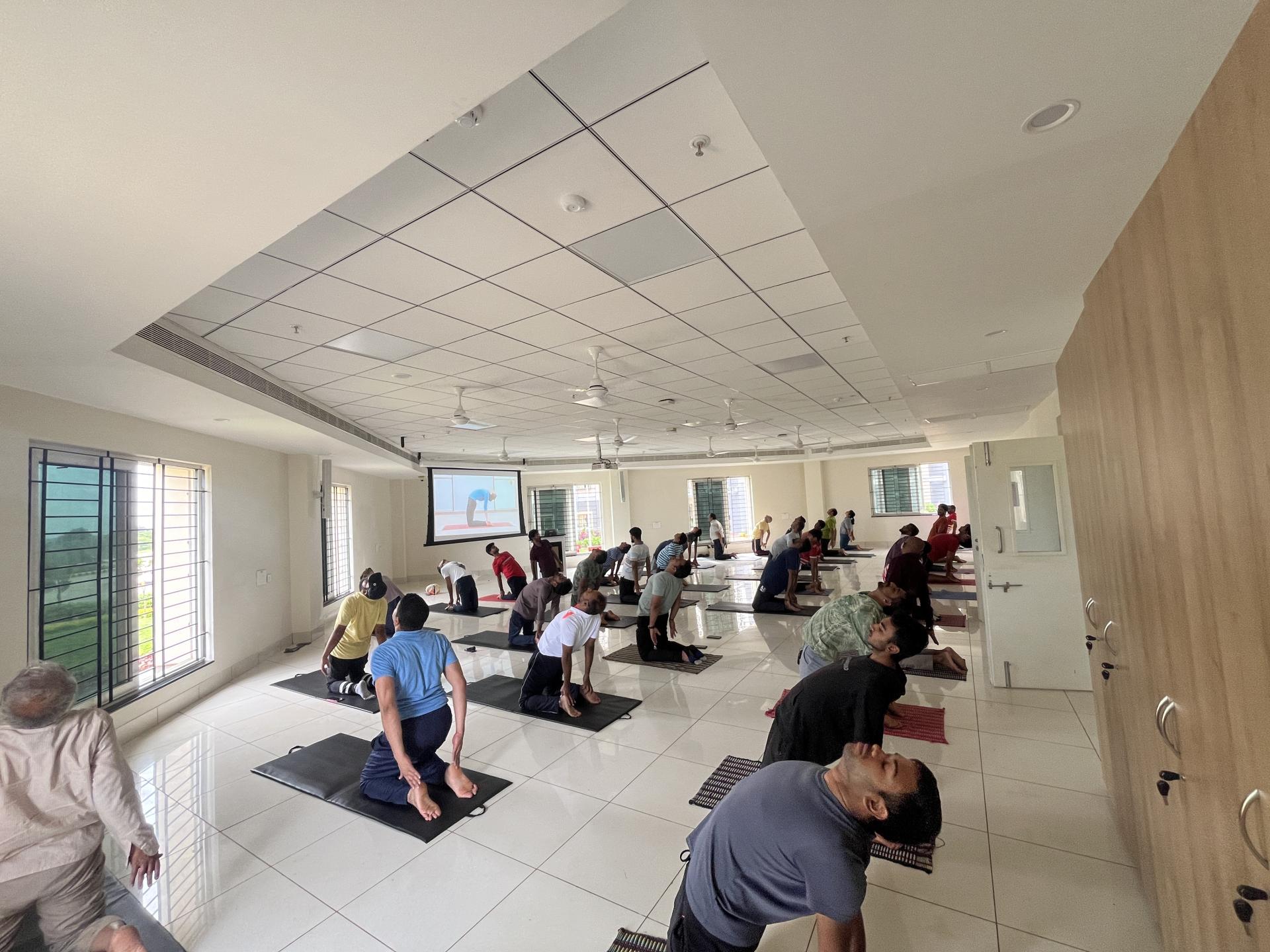 Description: Photos capturing various yoga Asanas activities, sessions, and participants during the event.