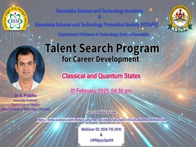Prof R. Prabhu, Associate Professor in the Department of Physics, was a resource person for the "Talent Search Program - Career Development" organized by Karnataka Science and Technology Academy, Yelahanka, Bengaluru, Karnataka 560097, India.