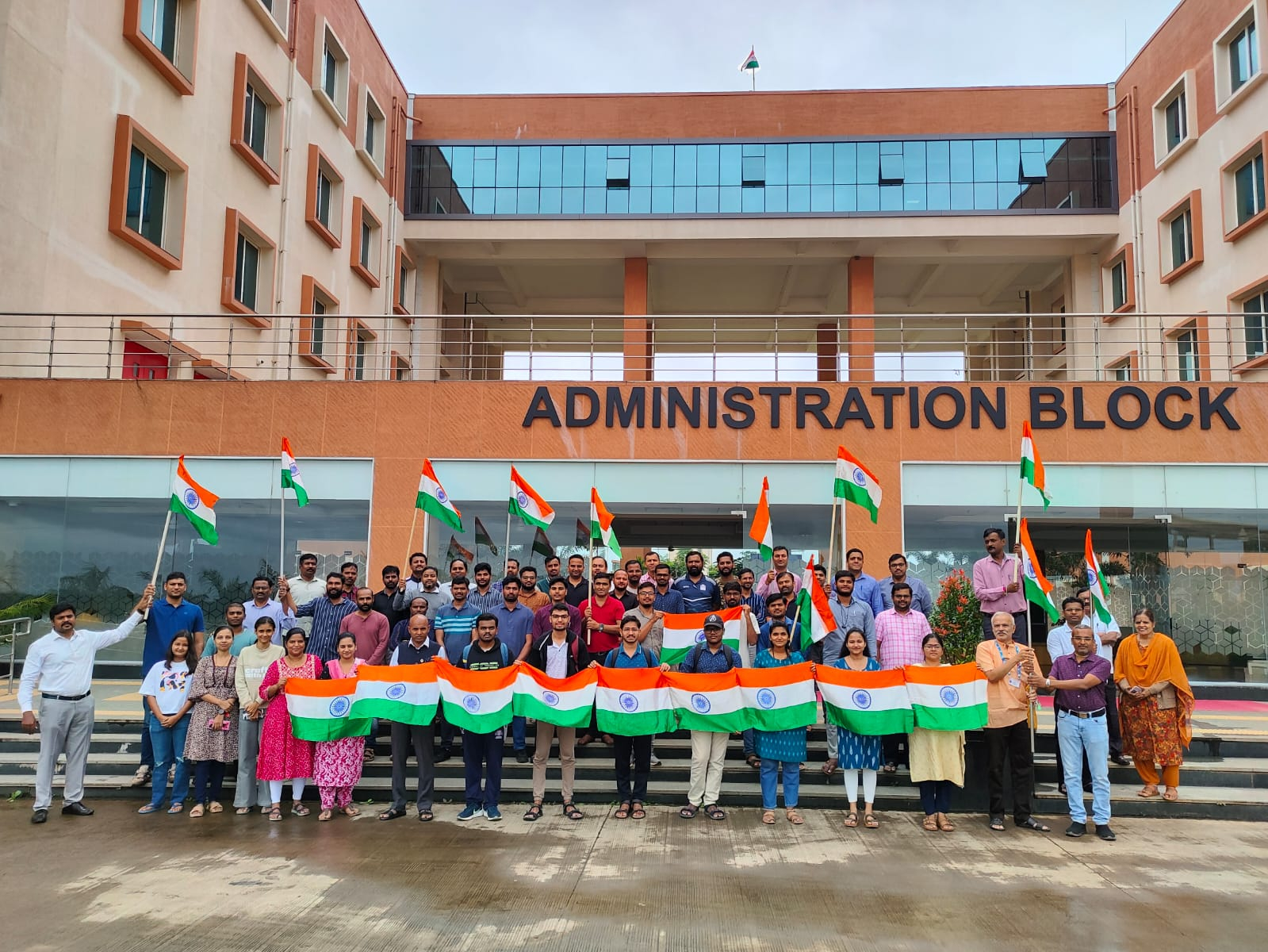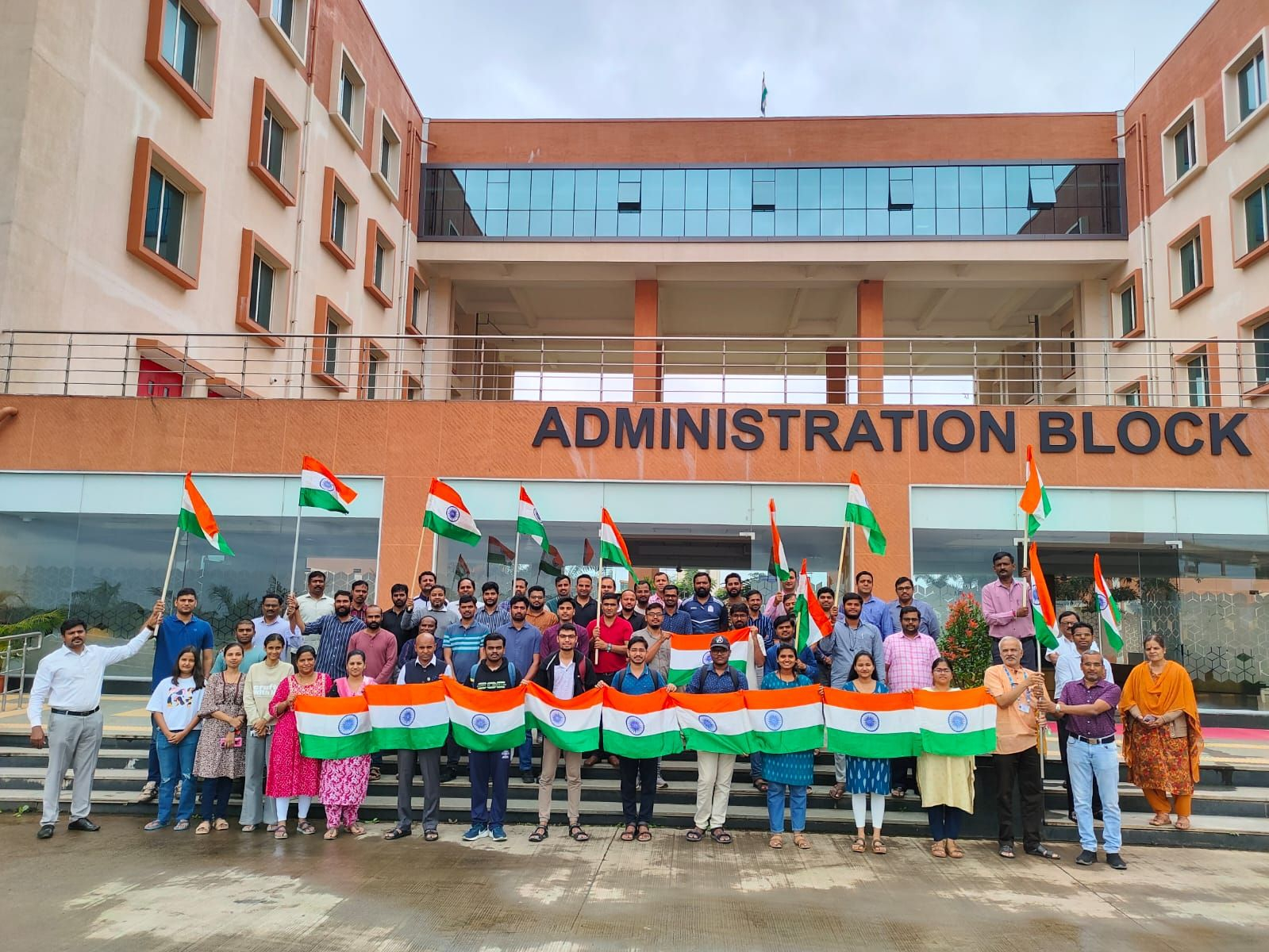 IIT Dharwad community came together today in front of the Admin Building to celebrate the spirit of our national flag as part of the Har Ghar Tiranga initiative.