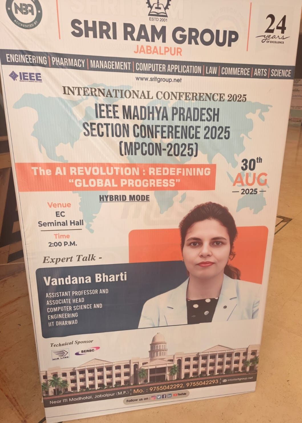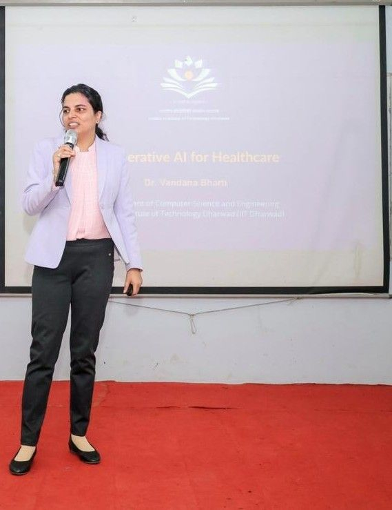 IIT Dharwad is proud to share that Prof. Vandana Bharti, Department of CSE, delivered a Keynote Talk on “Generative AI in Healthcare” at the IEEE CASS Madhya Pradesh Section International Conference (IEEE MPCON-2025), held on 29–30 August 2025 at Shri Ram Institute of Technology, Jabalpur. Her talk highlighted the transformative role of artificial intelligence in advancing medical research, diagnosis, and patient care. The prestigious conference, themed “AI Revolution: Redefining Global Progress”, was organized in association with Shri Ram Institute of Technology, Jabalpur, and supported by IETE Gwalior and MIR Labs.