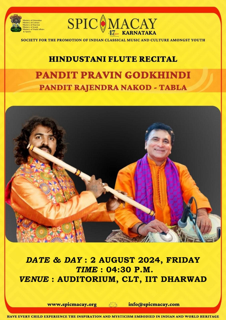 Invitation to the SPICMACAY events during UG Orientation in IIT DHARWAD