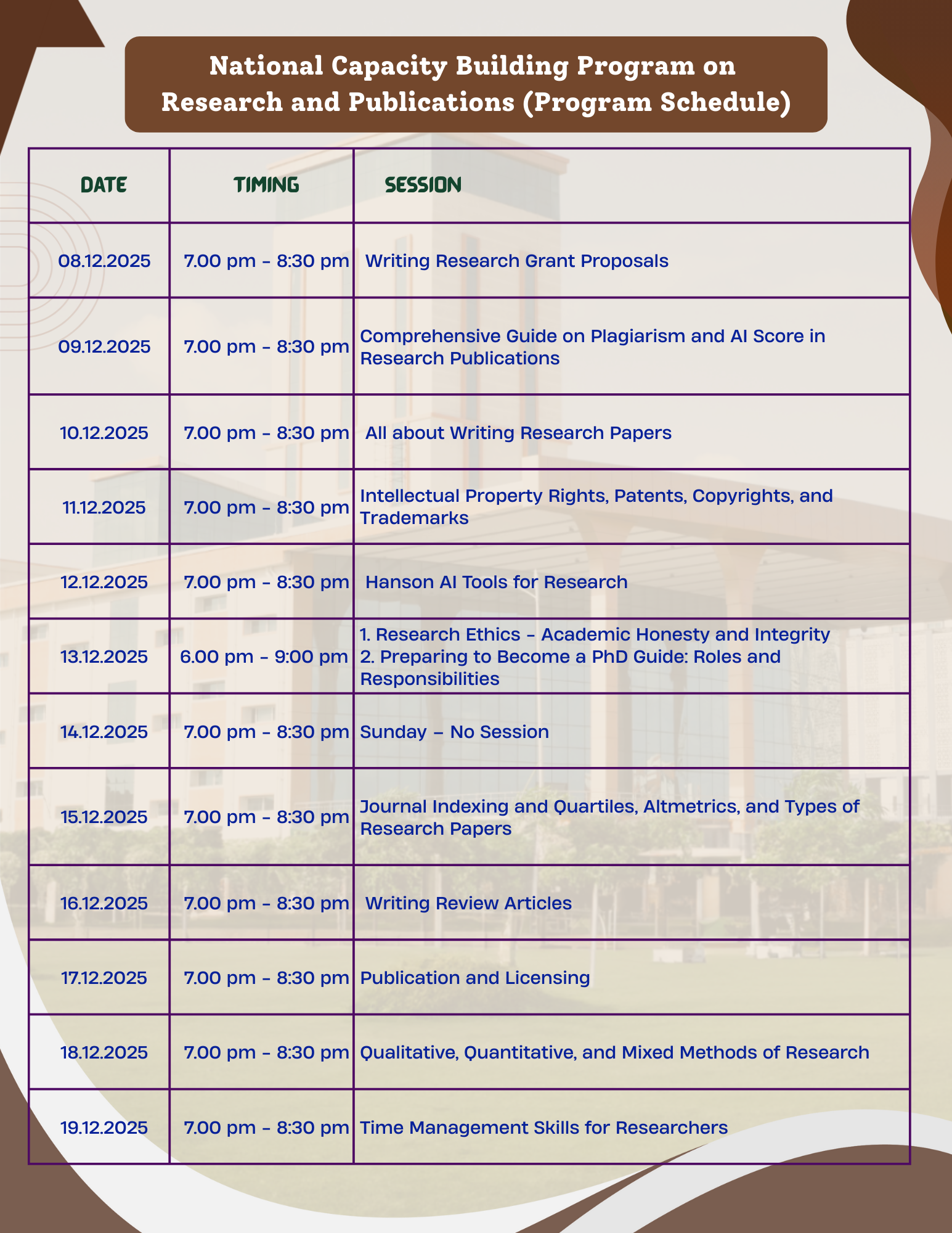 National Capacity Building Program on Research and Publications Two-Week Online Evening Course (December 8–19, 2025), Organised by : Department of Electrical, Electronics and Communication Engineering Indian Institute of Technology Dharwad – 580011.