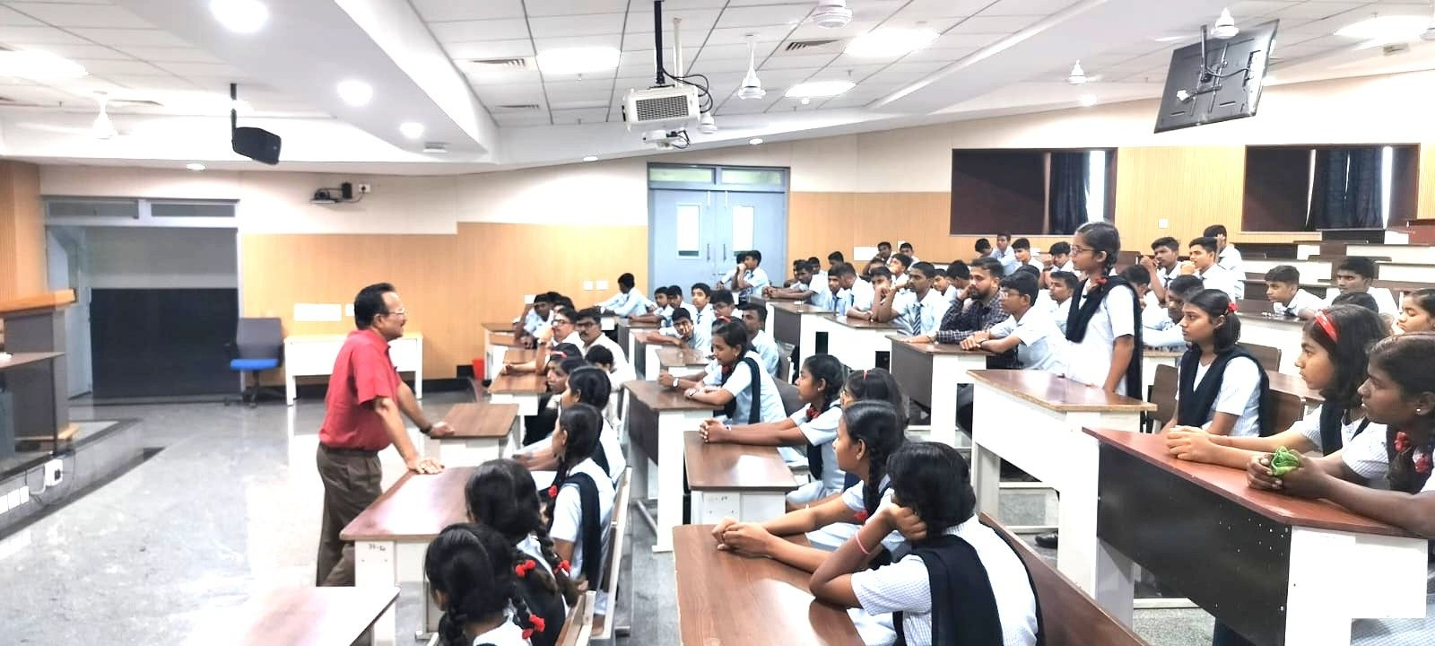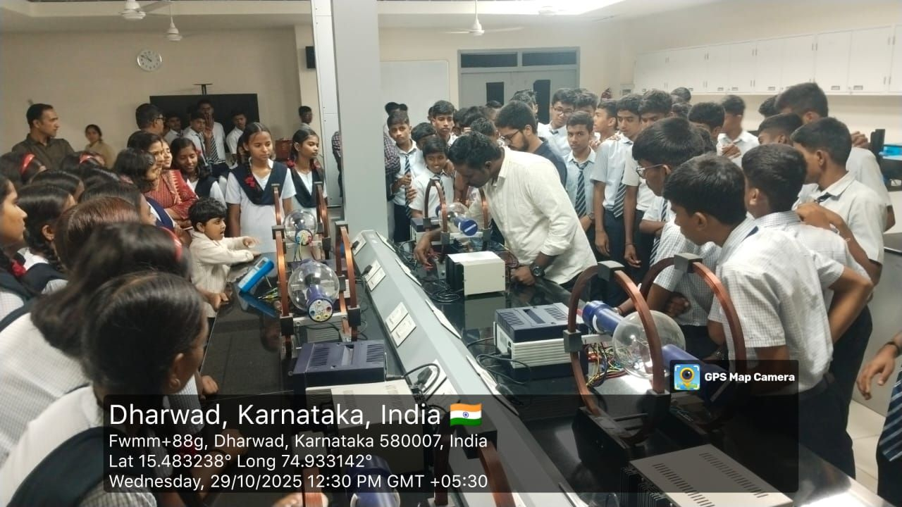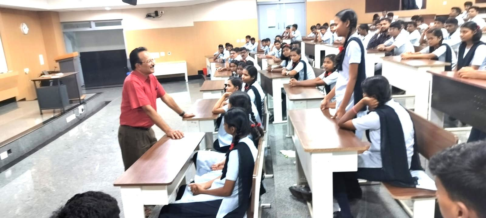 During the engaging session, Prof. Jayakumar motivated students on effective study habits, preparation strategies for JEE, and the importance of cultivating a consistent reading habit. He also highlighted the uniqueness of dhArwAD and its rich linguistic and cultural heritage. The session concluded with an interactive Q&A where students actively participated. As part of the outreach visit, the students also explored various academic facilities at IIT dhArwAD, including the Indoor Common Facility, Computer Science, Chemistry, EECE, Physics, Biotechnology, Civil and Infrastructure Engineering (CIE) laboratories and the Central Learning Theater.