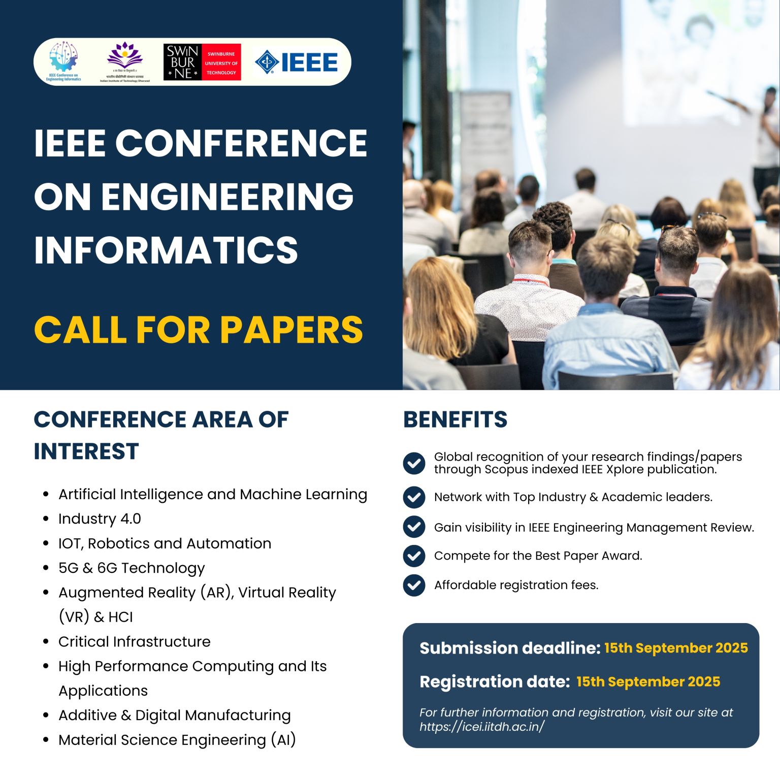 We're excited to announce the IEEE Conference on Engineering Informatics (ICEI2025 India).
